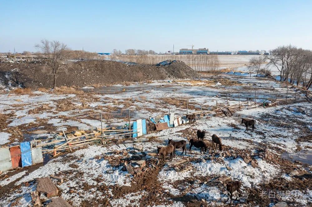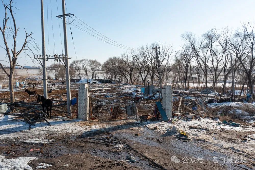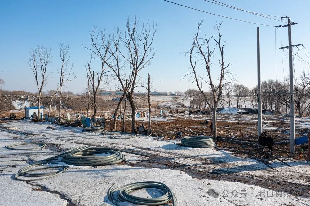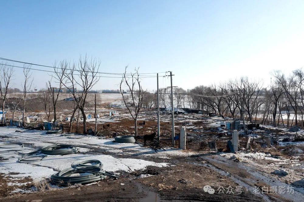 2024年3月11日下午,从向阳路长榆高中东侧的东门二胡同往南走约600米,再往西走,在长榆高中南侧,再次来到制革厂的位置,这里的制革厂连同周边的房屋都已拆除,闲置的拆迁区域已变成养驴场,周围一圈树木,还有一大群乌鸦!