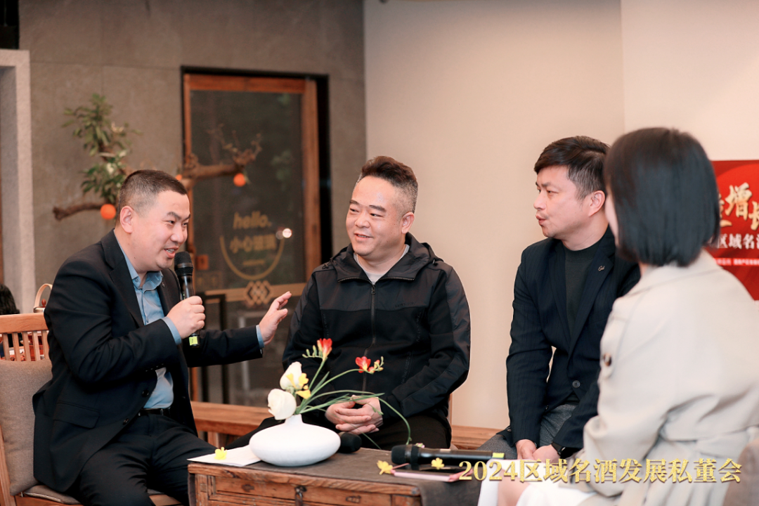 关于区域酒企全国化发展问题,在第一组对话中,创为咨询董事长邵伶俐作为嘉宾主持与江苏震洲五醍浆酒业有限公司副总经理赵大庆、山西乔家大院酒业有限公司总经理郭亮刚、贵州董宛定制文化发展有限公司总经理张西方进行了访谈。