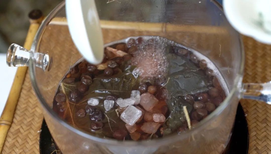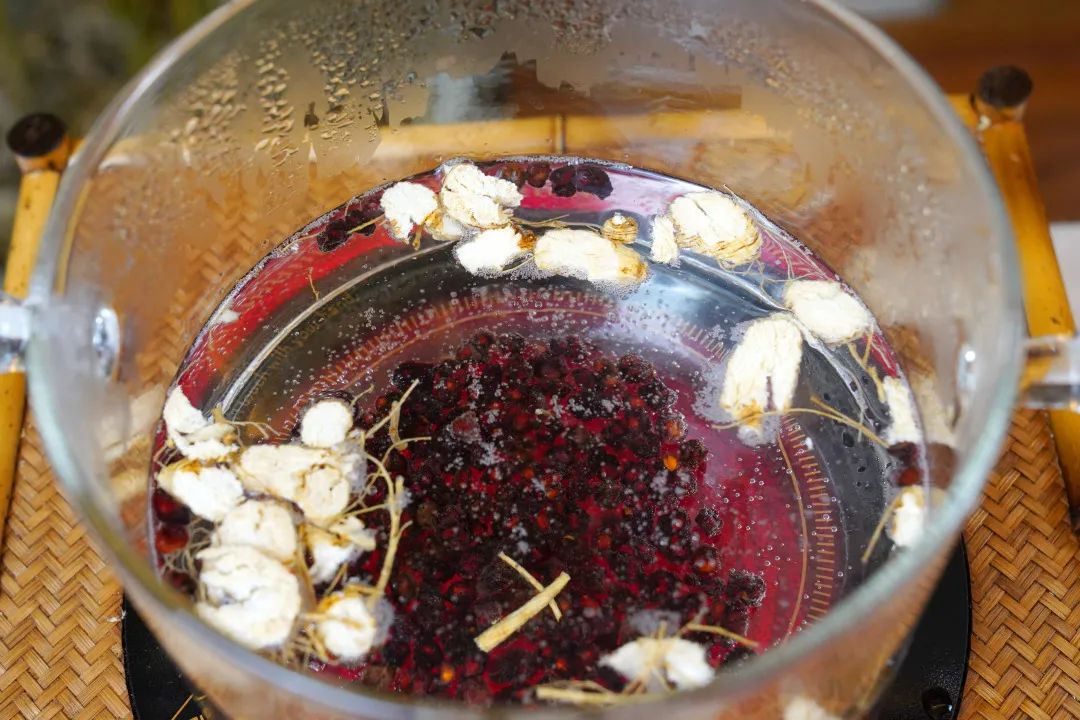 五味子汤由五味子、紫苏、人参、冰糖熬制而成。能够生津止渴,暖精益气,改善疲惫乏力,口干舌燥,心悸失眠等等气阴两虚引起的不适。