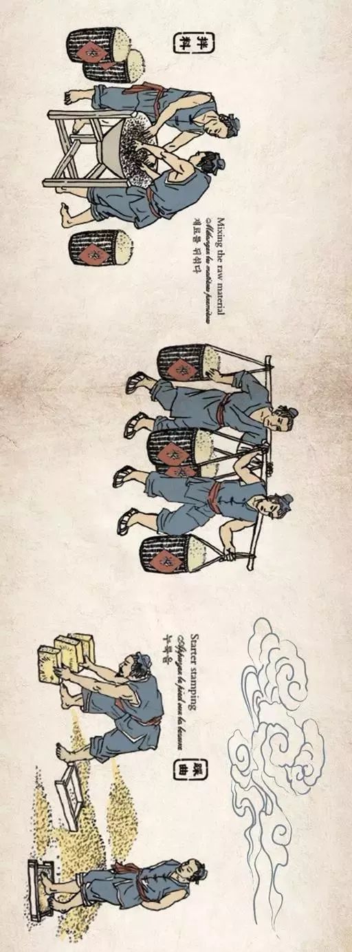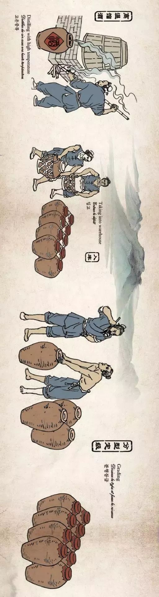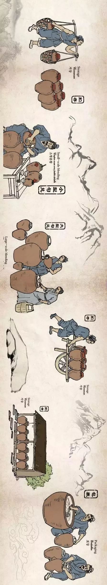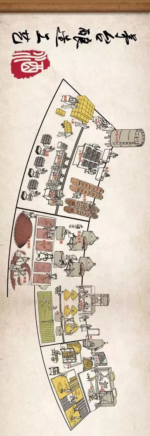 (二)同一批料要经过9次蒸煮、8次加曲、堆积、入池发酵,7次取酒才丢糟,历时整整一