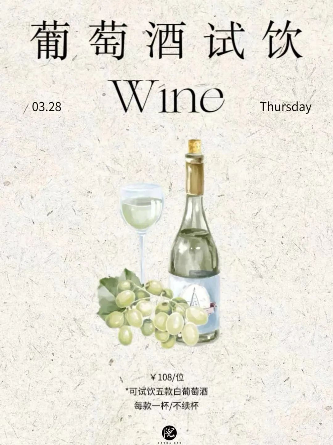 疯狂星期四,来院吧喝点酒暖暖身子,为自己充充电恢复能量!院吧准备五款白葡萄酒,让你一次试足五种风味!