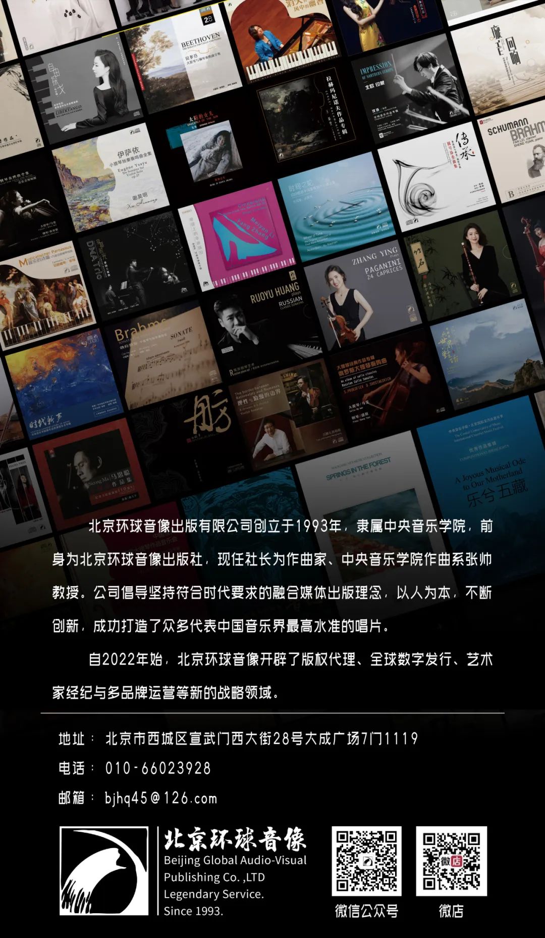 北京环球音像出版有限公司创立于1993年,隶属中央音乐学院,前身为北京环球音像出版社,现任社长为作曲家、中央音乐学院作曲系张帅教授。公司倡导坚持符合时代要求的融合媒体出版理念,以人文本,不断创新,成功打造了众多代表中国音乐界最高水准的唱片。