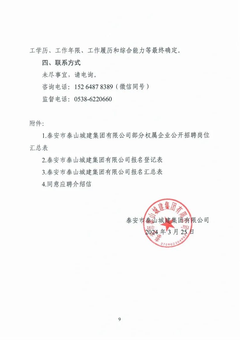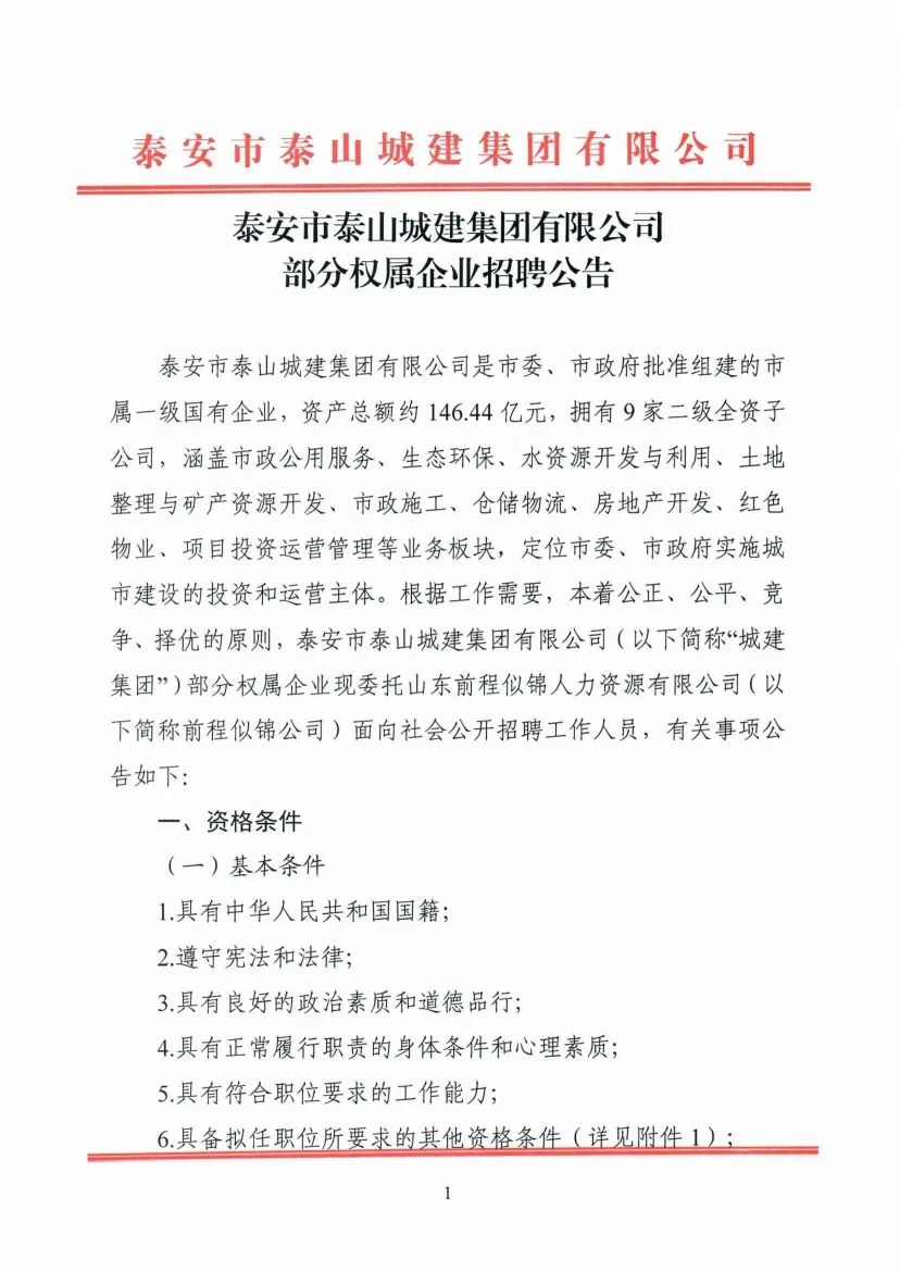 【公告】泰安市泰山城建集团有限公司部分权属企业招聘公告