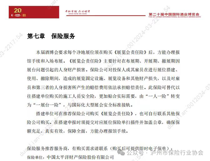 太平洋产险泸州中支独家服务中国国际酒业博览会