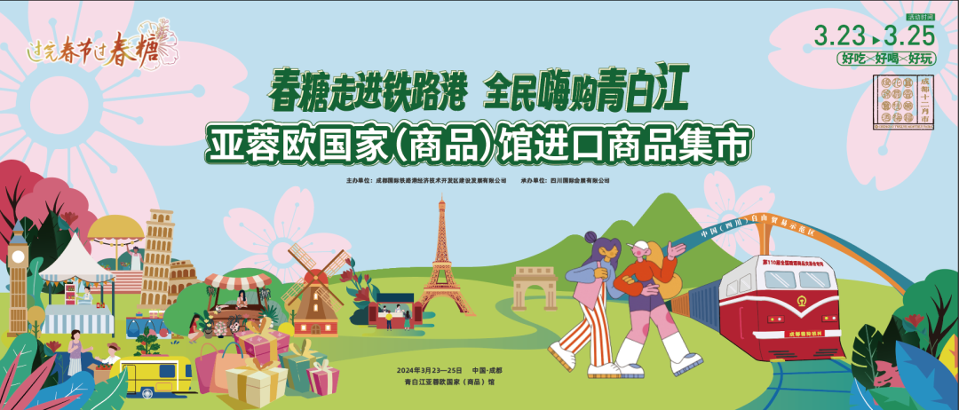 3月23日,亚蓉欧国家(商品)馆进口商品集市在成都青白江区正式拉开帷幕。本次集市由成都国际铁路港经济技术开发区建设发展有限公司携手多家单位共同打造,四川国际会展有限公司承办,以“春糖走进铁路港 全民嗨购青白江”为主题,为市民带来前所未有的购物体验,感受到不同文化、美食的交融与碰撞。