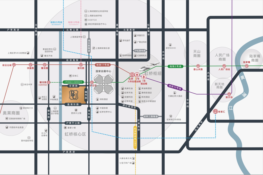 交通:驾车5分钟至虹桥枢纽,2号线徐泾东站300米,邻近10、17号线