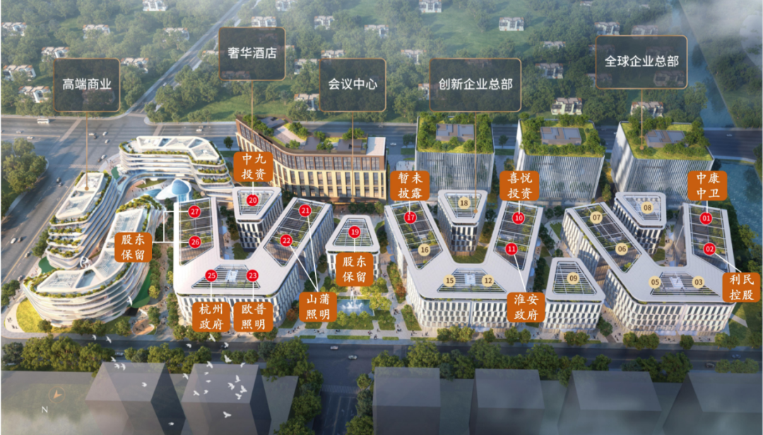 项目由23幢独栋办公、3座甲级办公与1座商业、1座酒店组成;