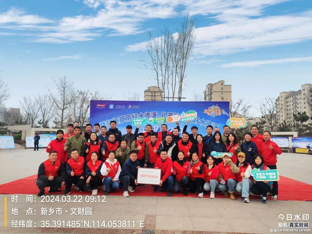 3月22日世界水日上午,百威(河南)啤酒有限公司携手卫辉市水利局,卫辉中州水务有限公司,河南宝钢制罐有限公司等企业共同参世界水日、中国水周,集中宣传活动,活动现场,卫辉市人民政府市委常委、政法委书局缑波为荣获“卫辉市节水先进企业”的百威(河南)啤酒有限公司、河南宝钢制罐有限公司、卫辉中州水务有限公司进行授牌。