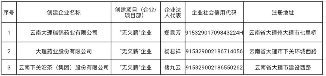 大理州2024年第一批“无欠薪”企业拟认定名单