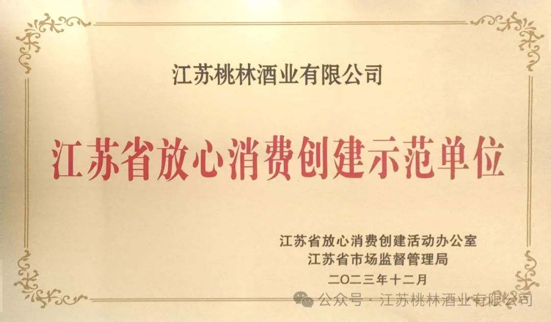 企业多款产品在省市以及国际展会上获质量奖,成为白酒市场经典,桃林酒以性价比高赢得了消费者的信赖。从2016年开始,桃林酒业连续多年被评为年度“江苏省放心消费示范企业”,也先后被评为“江苏省诚信企业”、“江苏省质量信誉双十佳企业”。