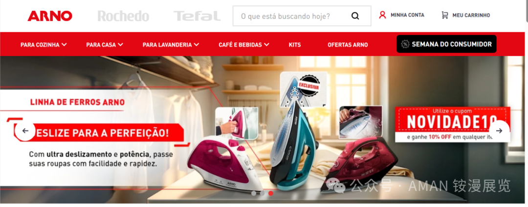 Arno 于 1940 年由 João Arnstein Arno 创立,1997 年被 SEB 集团收购。主营产品有:风扇、搅拌机、搅拌机、电烤箱、无油炸锅、电熨斗、洗衣机、蒸锅等。官网:(https://www.arno.com.br/)