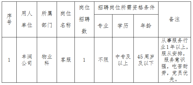 黄山丰润置业有限公司招聘公告
