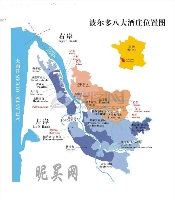 法国11个主要葡萄酒法定产区是:阿尔萨斯、波尔多和阿基坦、薄若莱、勃艮第、香槟-阿登、干邑市、南部-比利牛斯,雅文邑及西南葡萄产区、普罗旺斯蔚蓝海岸、东比利牛斯-鲁西永、罗纳河谷和卢瓦尔河谷。