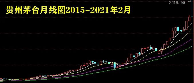 作为行业的第一龙头股和牛市领涨股,贵州茅台的股价,也从2016年初的80元附近(前复权),到2021年初最高突破了2500元,5年时间的涨幅超过了30倍。