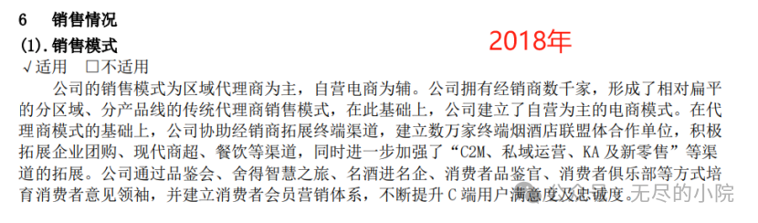 从数据方面观察到的情况大致就是这些了。下面从年报中关于渠道情况方面的描述传递的信息,进一步从其他层面感受这家公司。 先从年报中“渠道模式”小节的分段品读开始: