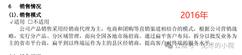 这套相对扁平化的渠道模式在年报描述层面最早可追溯到2016年,表述虽然简单,但是可见到“经销商为主、直销为辅,渠道扁平化”的战略形态。