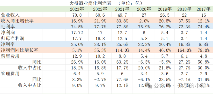 舍得2023年主要经营数据如下图: