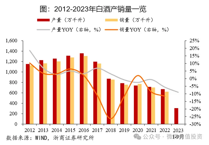 白酒产量从2016年最高的1358万吨快速下降至2023年449.2万吨,下降了67%,可谓是行业猛烈巨变啊。