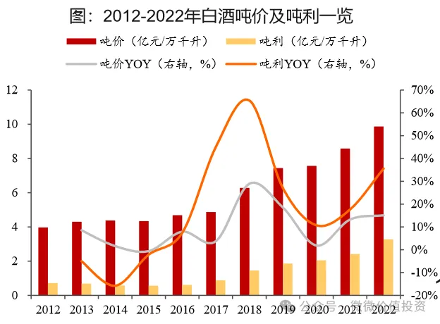 但是我们可以看到,白酒的营收和利润规模在白酒产量减少2/3的前提下却没有减少,反而逐年增加,利润增加更加迅速。白酒公司通过提价策略,提高中高端白酒量的占比,提高公司的营收和利润。