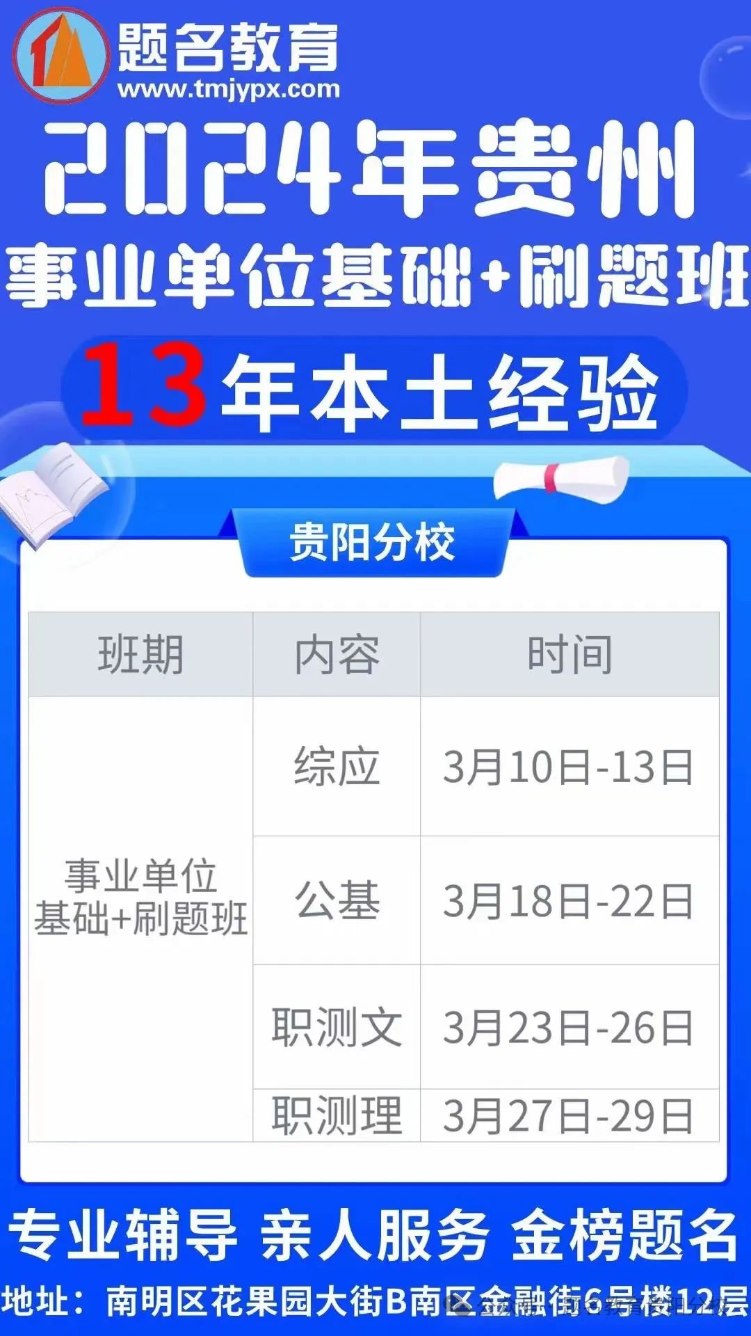 ?关注贵州题名教育,第一时间获取招考信息、开班信息