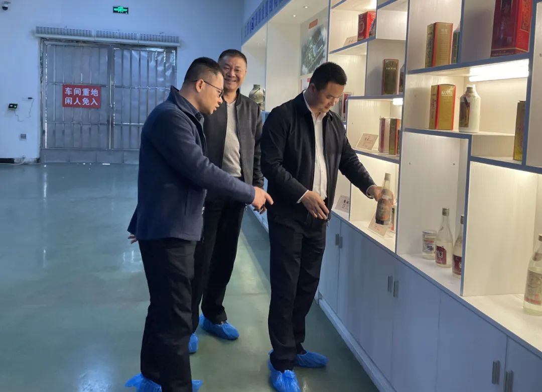 丁志鹏一行参观了企业产品展示区及生产酿造车间,详细了解了企业发展历程、产品工艺及未来发展方向,并就白酒行业现状、前景及供应链业务合作方式展开深入探讨。