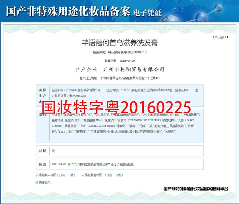 不同于普通洗发水,这款何首乌洗发膏拿到了国妆特字。