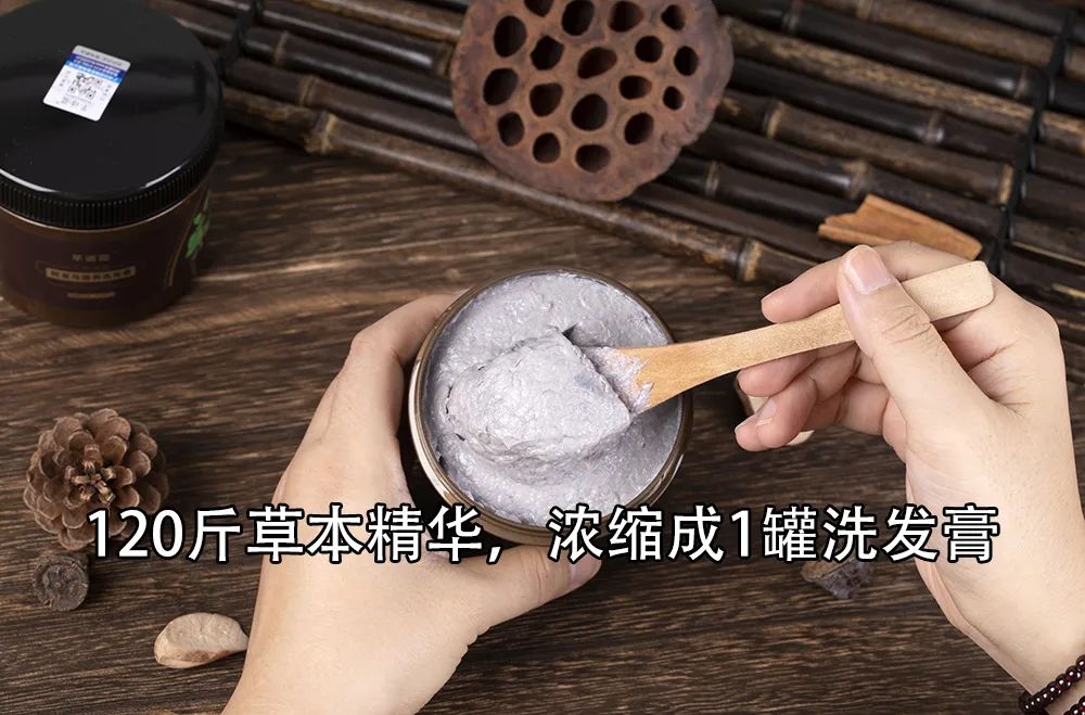 历经拣、配、碾、磨、煮、熬、炼7道古法工艺,添加水量极少,经过15个小时小火慢熬,20斤草本才能浓缩成1斤洗发膏。