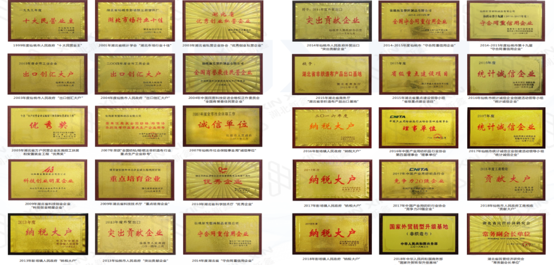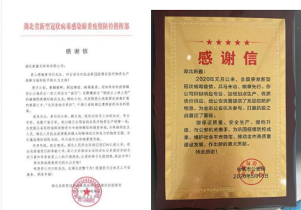 在疫情期间,新鑫公司累计捐赠隔离衣32000件、防护服7050套,带底靴套1000只,口罩70000片,总价值50多万元。公司这一系列的行为与做法,也得到湖北省疫情防控指挥部及仙桃政府的高度认可和表彰。