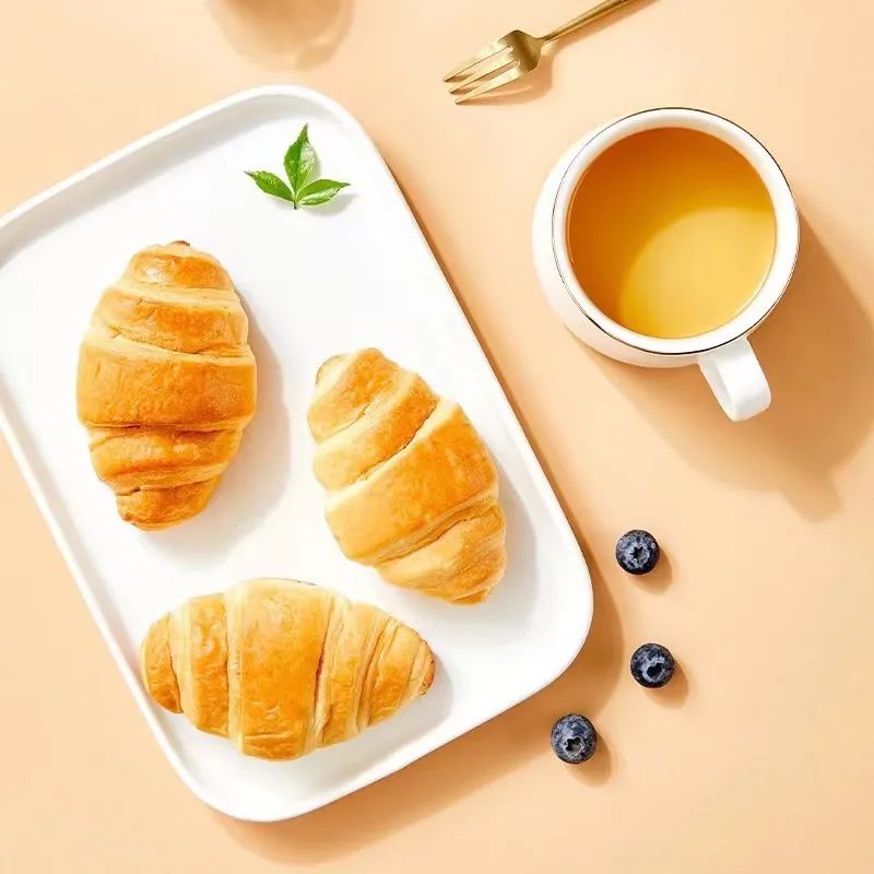 可颂也称为牛角包,是利用蛋白起泡性能,使蛋液中充入大量的空气,加入面粉烘烤而成的一类膨松点心,因为其结构类似于牛角而得名。在国外,又称牛角面包为可颂面包,国内称为牛角包面包。