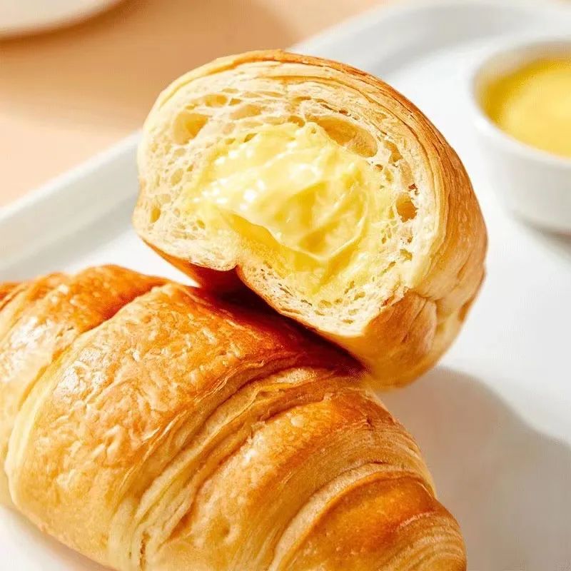 每一块卡兰希梅菜爆浆可颂面包皆由上好的小麦以及鸡蛋、奶粉等等作为原料精心制成,更有芝士与奶酪的完美搭配,麦香中透着一股芝士与奶酪的味道,简直就是天作之合。