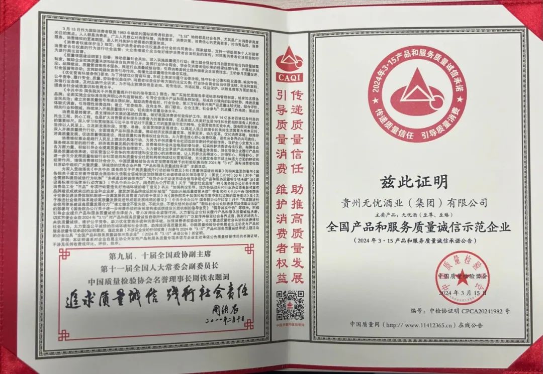 中国质量检验协会作为国内质量检验领域权威专业机构,负责宣传贯彻市场监督领域的质量法律、法规、政策,组织质量和产品质量检验方面的标准研究、制定和技术开发;组织新技术、新产品鉴定和评审,对产品质量、服务质量、工程质量开展检验、鉴定;树立质量工作先进典型和质量诚信标杆,推广质量工作优秀示范的先进经验。此次一举荣获4枚奖牌,充分说明无忧酒业对品质的坚守得到了广大消费者的高度认同。