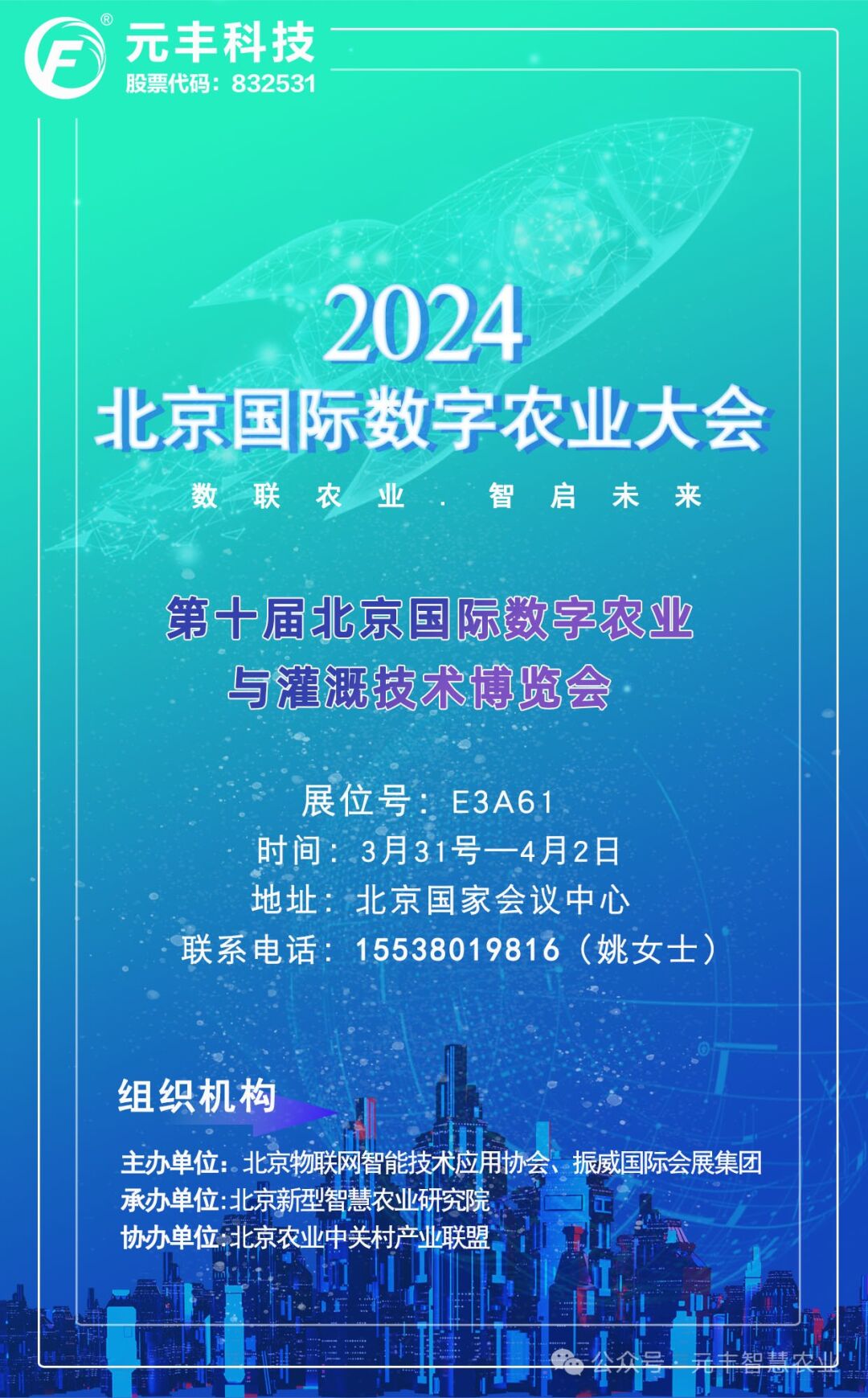 汇聚全球智慧,共享世界先进的灌溉技术成果。第十届北京国际灌溉技术博览会暨世界灌溉科技大会,将于2024年3月31日-4月2日在北京国家会议中心举办。河南元丰科技网络股份有限公司受邀参加,届时我公司品牌战略总监张文波博士将做“数智赋能高标准农田建设”的方案分享。来自全球10个国家和地区的800家企业将现场展示领先全球的先进装备与技术,共享最新的农业及园林灌溉技术、理论与实践经验,开拓灌溉科技的新前沿,促进全球节水灌溉生产的可持续发展,推动全球灌溉事业迈上新的高峰。