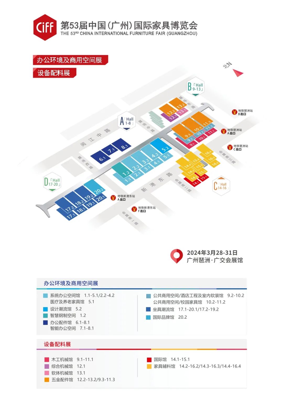 第53届中国家博会(广州)办公商用及设备配料展将于3月28-31日,在广交会展馆(广州市海珠区阅江中路380号)盛大举办。本届展会扩馆升级,以精准的展会布局和超强的参展阵容,为办公商用及供应链行业、企业提供独一无二的展示平台。广交会展馆四馆全开,共使用45个展馆,汇聚国内外优质品牌超2600家,展览面积扩大至41.7万平米,其中办公商用展增加使用广交会展馆D区17.1、17.2号馆,共使用24个展馆,规模较2023年增长9%;设备配料展增加使用广交会展馆C区14.4-16.4号馆,共使用21个展馆,规模较2023年增长14%。办公商用展以“办公新时尚、商用新思潮”为主题,围绕办公环境、办公坐具、公共商用空间三大题材,倾力打造办公行业潮流发布平台、坐具趋势引领平台、商业空间项目首选平台,龙头品牌悉数亮相,共同打造办公商用一站式采购平台,引领绿色低碳办公商业新潮流。设备配料展以“纵览上下游,链出新未来”为主题,荟聚生产设备、家具辅料和五金配件等家具生产上游题材,全力构建生产制造智能化平台、家居设计美学选材平台、供应链顶尖贸易平台,集中展示生产上游全链。汇聚一批专精特新企业,展示家具制造行业尖端品牌,积极服务制造强国大局。本届展会聚焦技术创新和市场发展趋势,集中展示尖端智能生产和行业热点风口,智能制造的实现,是对传统制造的突破,也是家居行业供应链发展新质生产力的技术支撑。本届设备配料展着力打造生产制造智能化平台,汇聚了全球先进家具智能生产技术,展示数字化转型、智能化转型方案,涵盖板式、软体、金属等各品类家具制造设备及相关配件,实现全景式的产业链覆盖。国内外顶尖家具生产设备品牌纷纷首发新品,智能封边机、数控裁板锯等新一代产品竞相涌现,带动传统家具制造业智能化转型升级。第53届中国家博会(广州)办公商用展及设备配料展于3月28—31日在广州琶洲广交会展馆盛大举办,邀您共享新机遇,共探新风向,共领新风潮。