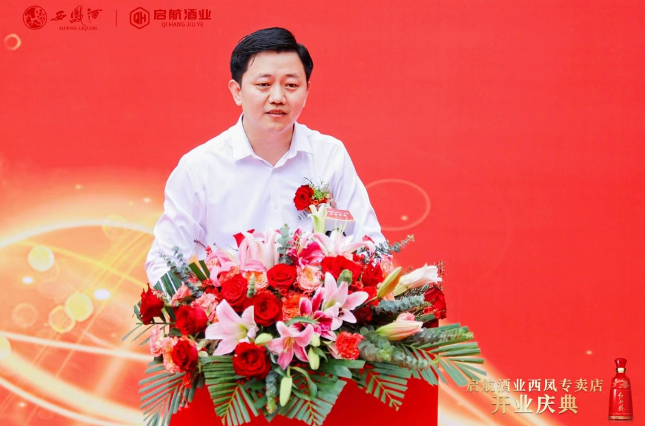 在庆典仪式上,刘泉峰代表广西河南商会发表了热情洋溢的致辞。刘泉峰说,启航酒业是广西河南商会的副会长单位,程银建是本会的副会长和商会酒类行业专业委员会主任,程银建副会长为商会的发展做出了重要贡献。启航酒业西凤专卖店的开业,标志着程银建的个人事业又有了新的发展,为广西河南商会的发展注入了新的活力,相信,在程银建的带领下,西凤专卖店必将取得更加辉煌的业绩,为商会的繁荣和发展做出积极贡献。