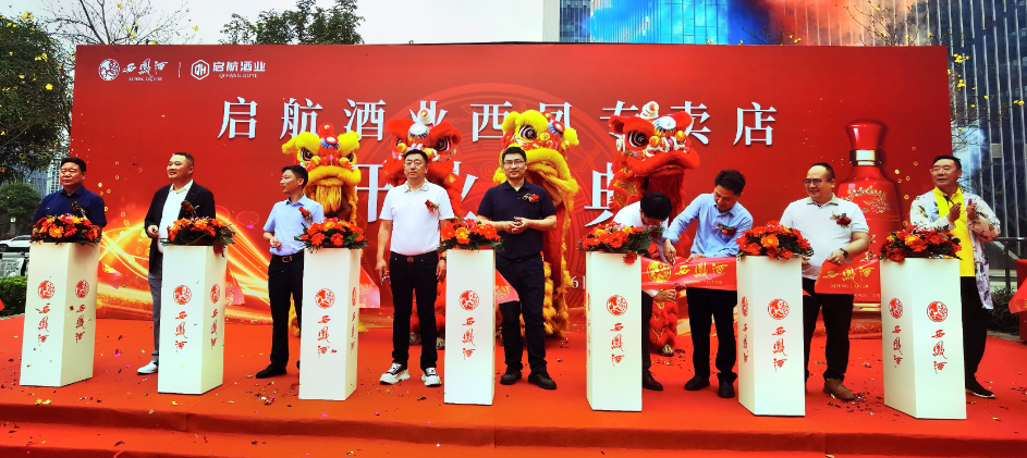 在阵阵掌声中,刘泉峰、程银建及多位领导嘉宾健步登台,共同为启航酒业西凤专卖店剪彩。“开业大吉、红红火火、生意兴隆、财源广进”祝贺声响起。