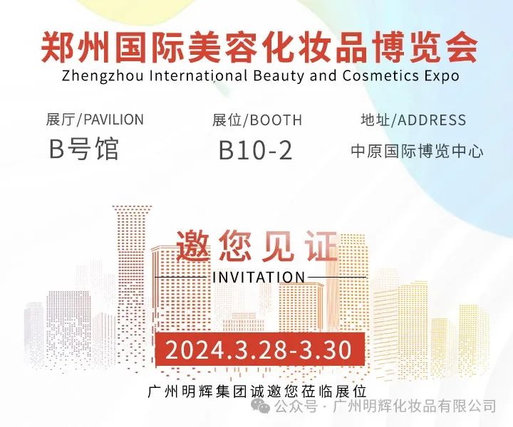 春回大地,万物复苏,美丽的郑州也将迎来一场盛大的美博会!广州明辉集团携子公司荣幸地参加了第54届郑州国际美博会,与您共享这场美丽的盛宴!