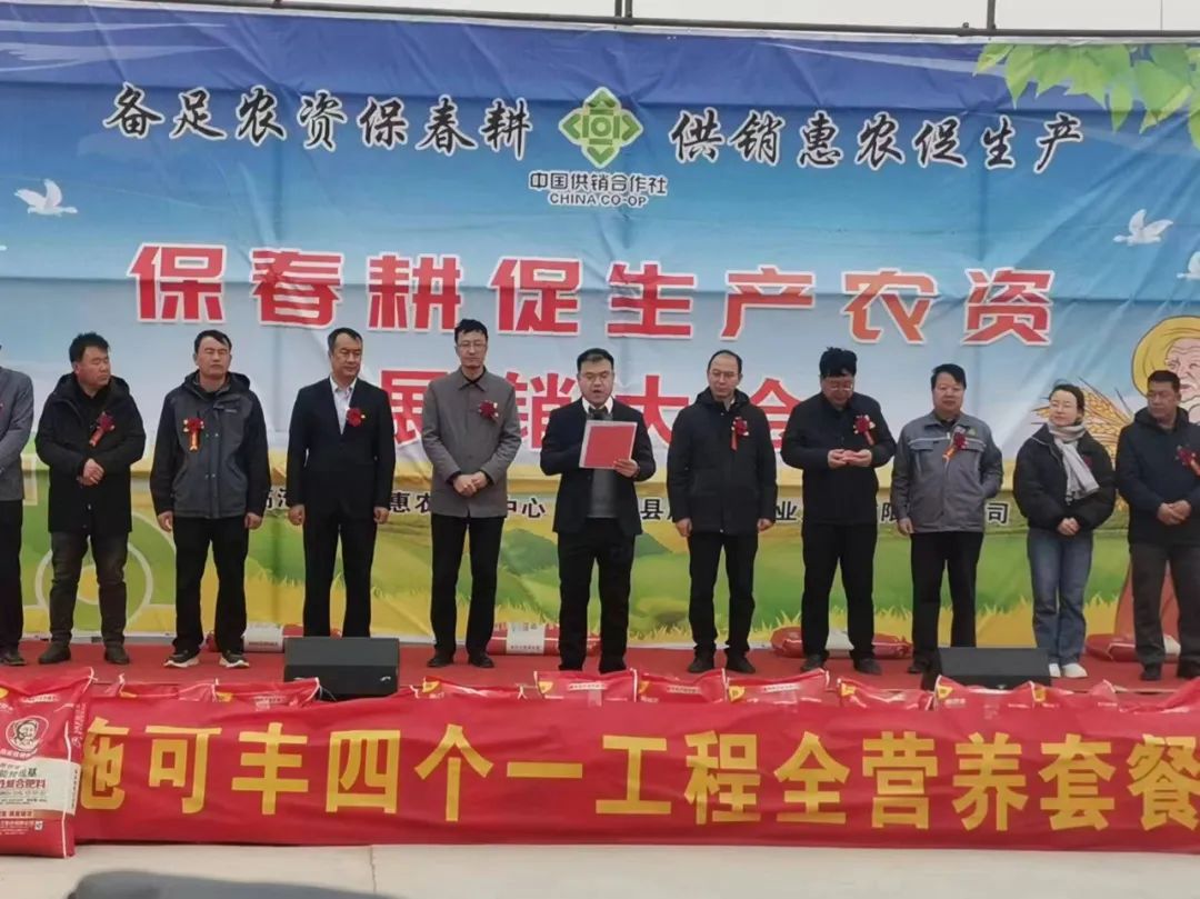本网讯(甘肃施可丰营销公司 曲本富)3月15日,由靖远县高湾镇供销惠农服务中心组织的保供促产农资产品展销会隆重开幕,靖远县高湾镇党委副书记、镇长苏富致辞,公司受邀参加此次活动。