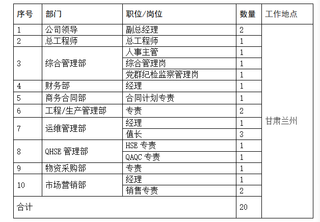 因皋兰优能公司业务发展需要,决定面向社会招聘专业人才,岗位需求汇总表如下(详细岗位见附件1):