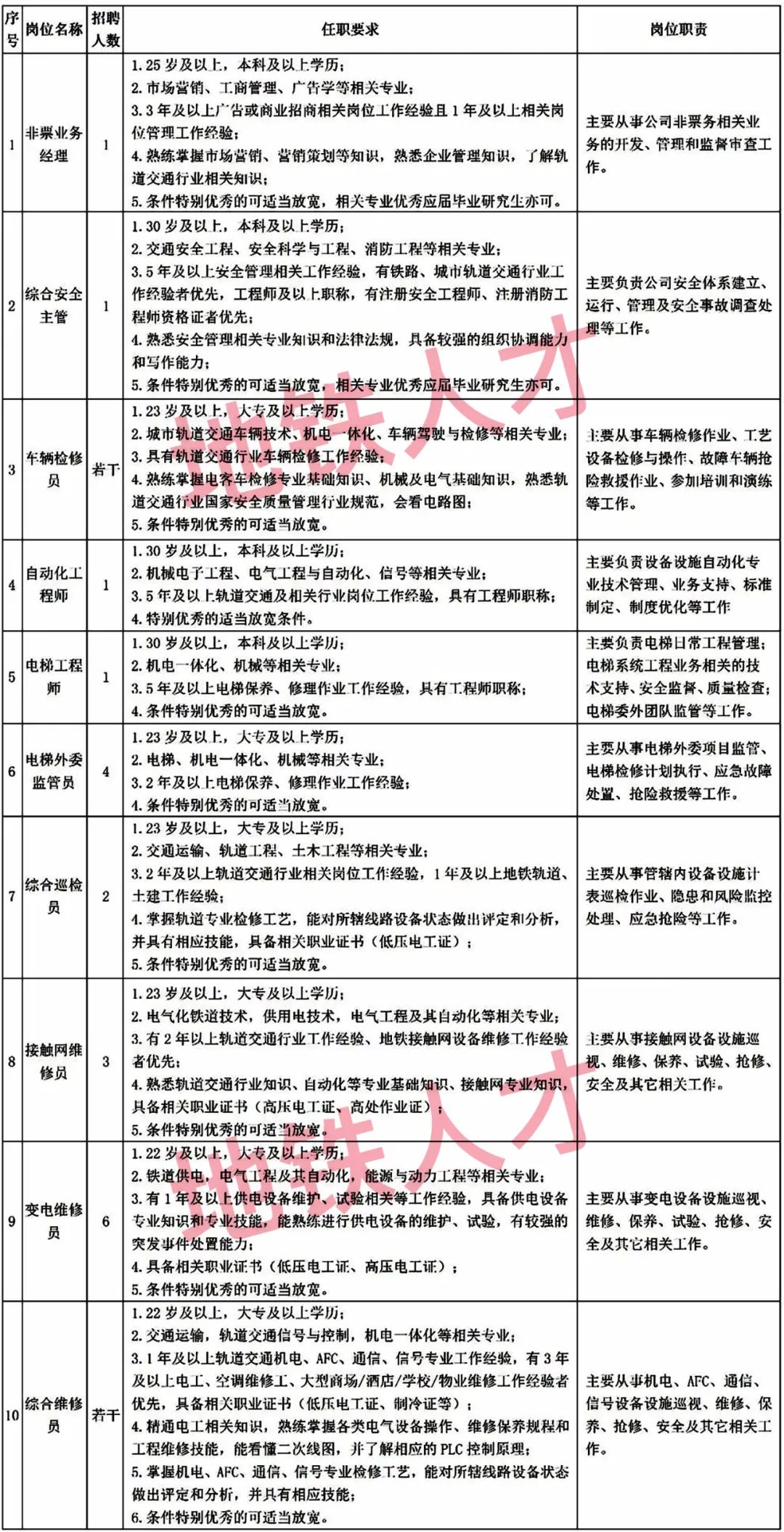 10、又一地铁运营公司最新招聘公告!高中及以上学历可报