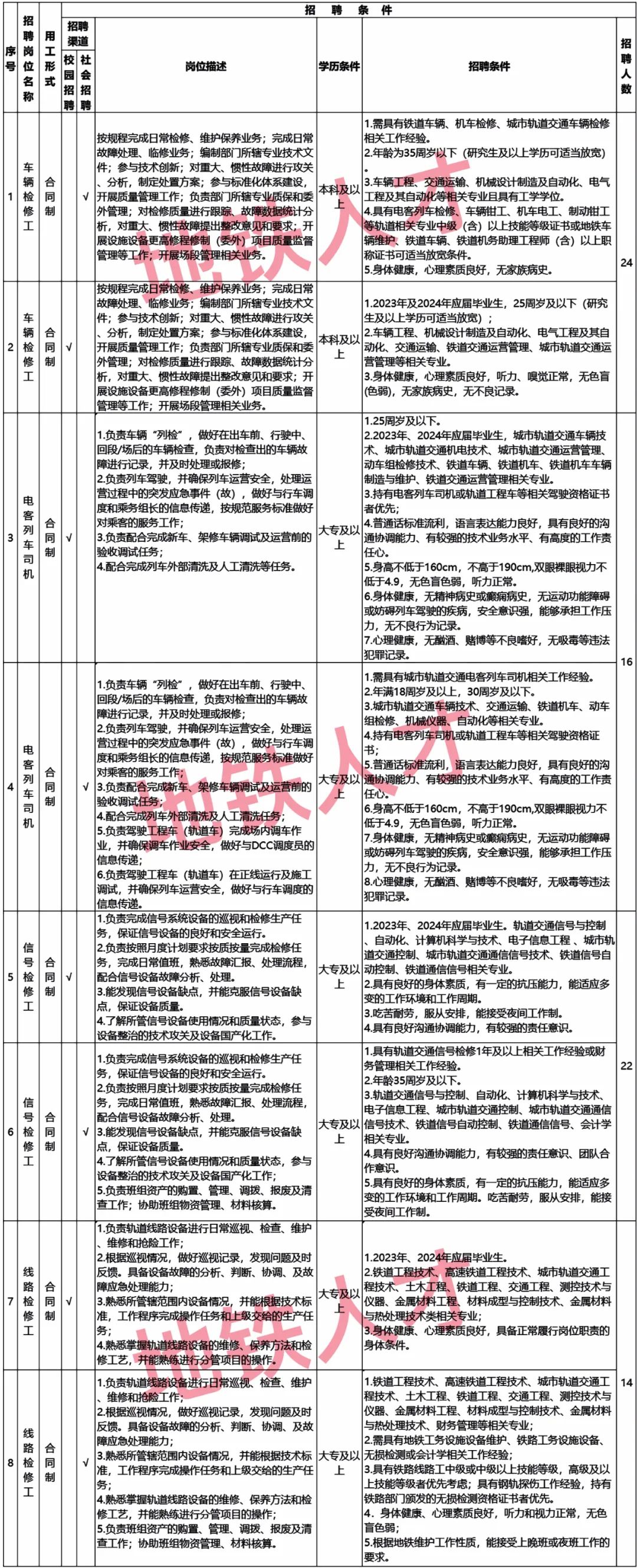 1、又一地铁运营公司招聘电客车司机、车辆检修、线路检修、信号检修等岗位!(4.3)