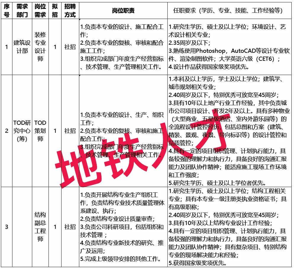 11、好机遇!极少招聘!又一地铁公司2024年社会招聘公告