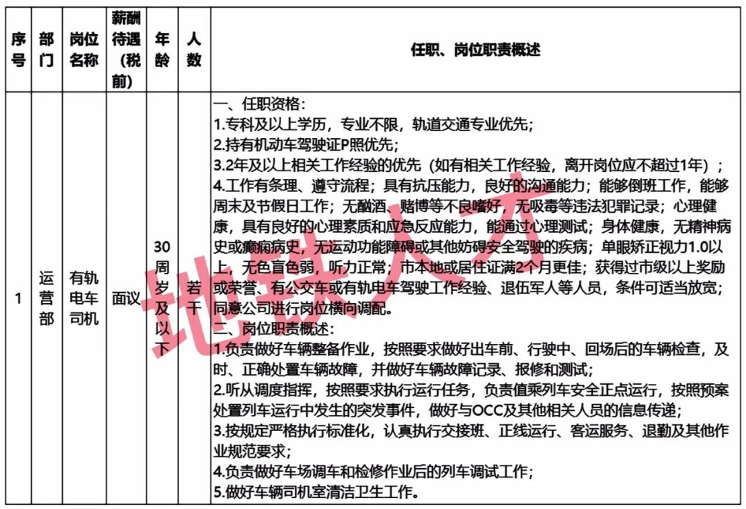 2、这家公共交通公司招聘有轨电车司机!(4.6)