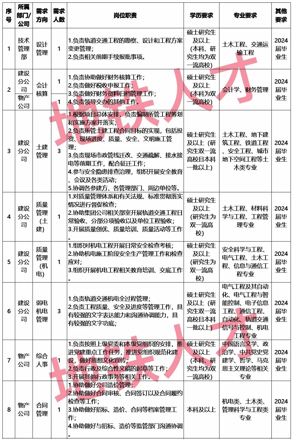 9、社招!又一轨道交通集团2024年招聘公告(3.29)