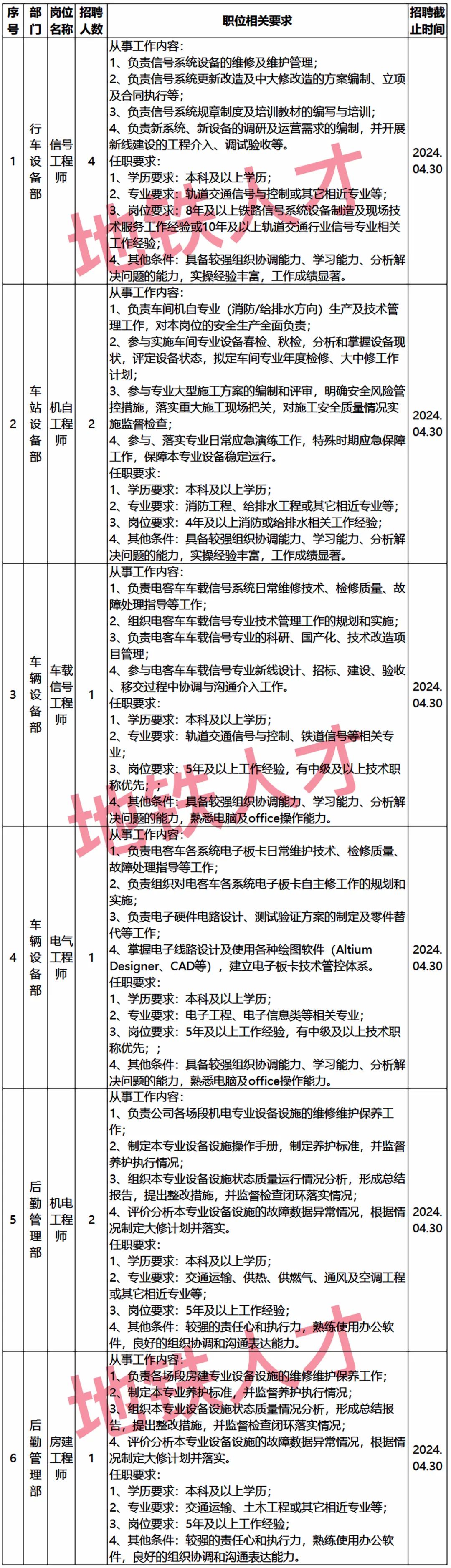 4、新开通线路!机遇好!这家轨道交通公司2024年社会招聘公告(3.29)