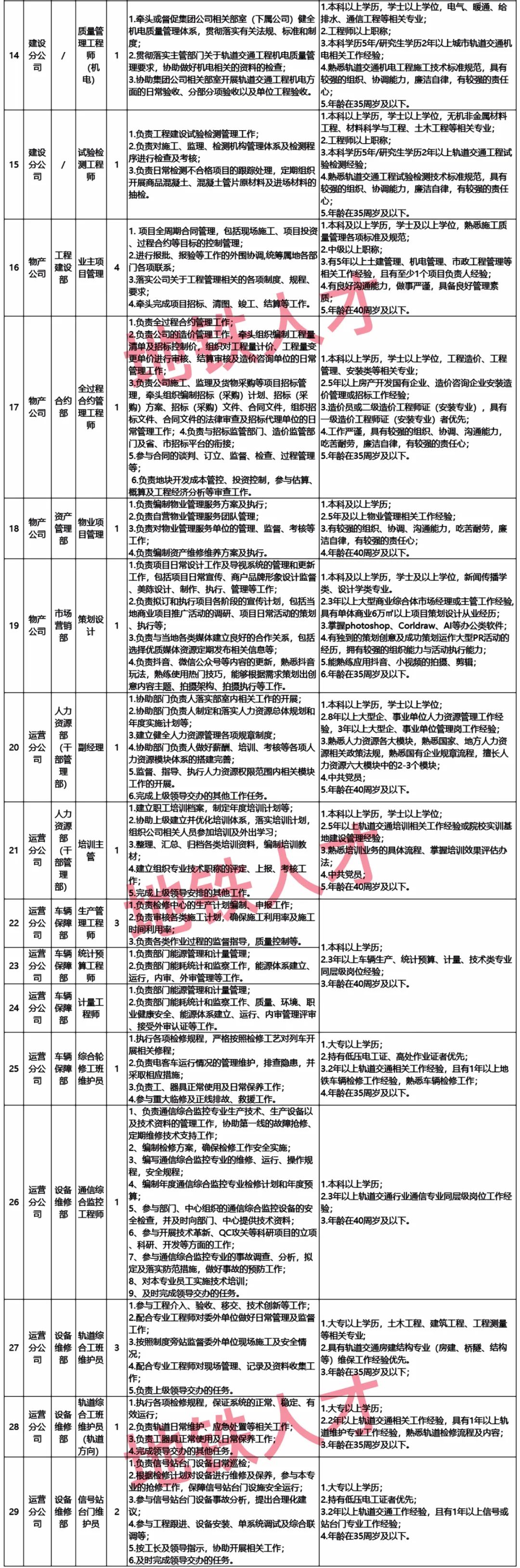14、社招!又一轨道交通集团2024年招聘公告(3.31)