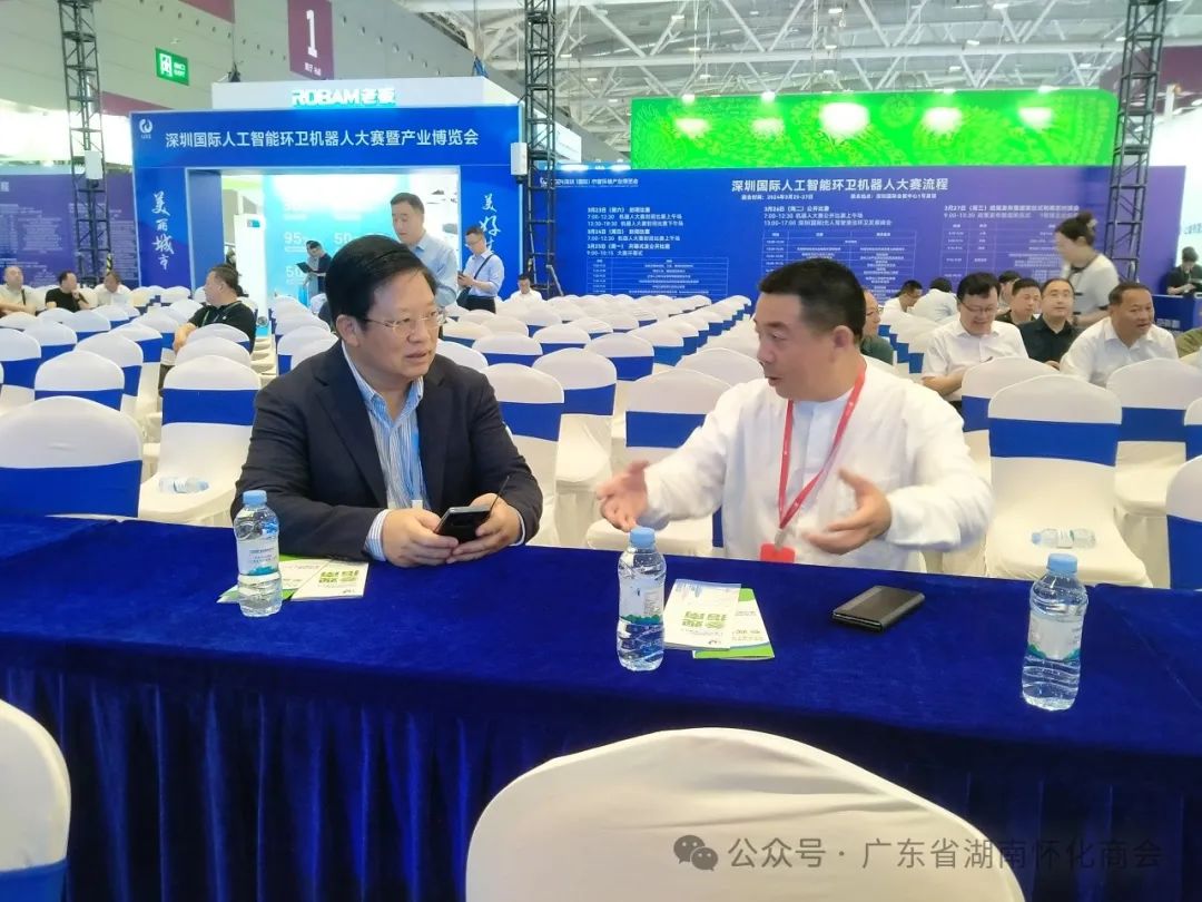 广东省湖南怀化商会会长、深圳华瀚投资控股有限公司董事长郑能欢受商会常务副会长、深圳正壹会展集团有限公司董事长杨世斌邀请出席博览会。观展过程中,郑会长向参展商学习交流,了解了最新的市容环境装备和技术。郑会长对展出的产品表示赞赏,并对市容环境行业的创新潜力表示乐观。