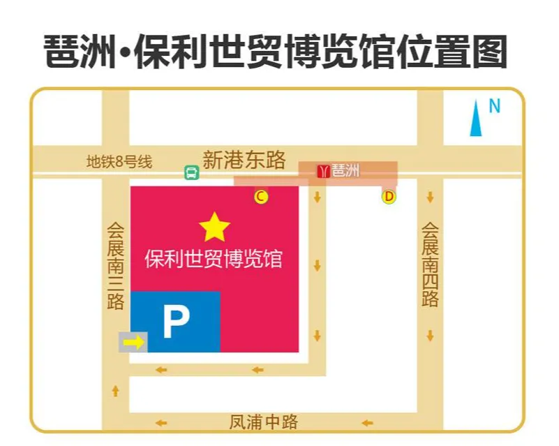 地铁8号线琶洲站C/D口中间通道负一层麦当劳对面)直通展馆