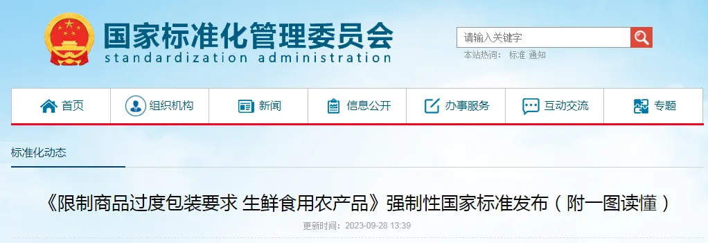 《限制商品过度包装要求 生鲜食用农产品》(GB 43284—2023)将于2024年4月1日起实施。