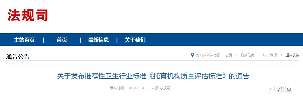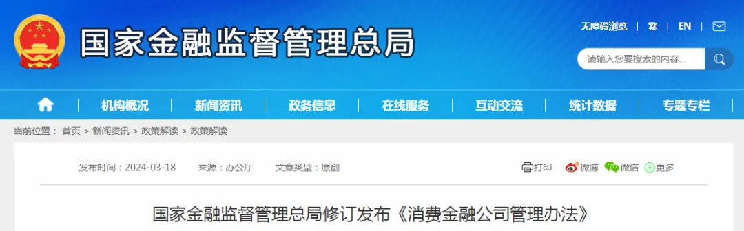 近日,国家金融监督管理总局修订发布《消费金融公司管理办法》,《办法》共十章、79条,将于2024年4月18日起正式实施。《办法》明确,要提高准入标准。提高主要出资人的资产、营业收入等指标标准,以及最低持股比例要求,强化主要出资人的股东责任;提高具有消费金融业务管理和风控经验出资人的持股比例,促进其更好发挥专业与风控作用;提高消费金融公司最低注册资本金要求,增强风险抵御能力。国家卫生健康委近日发布推荐性卫生行业标准《托育机构质量评估标准》,对托育机构的办托条件、托育队伍、保育照护、卫生保健、养育支持、安全保障、机构管理等评估的内容进行了规定,自2024年4月1日起施行。
