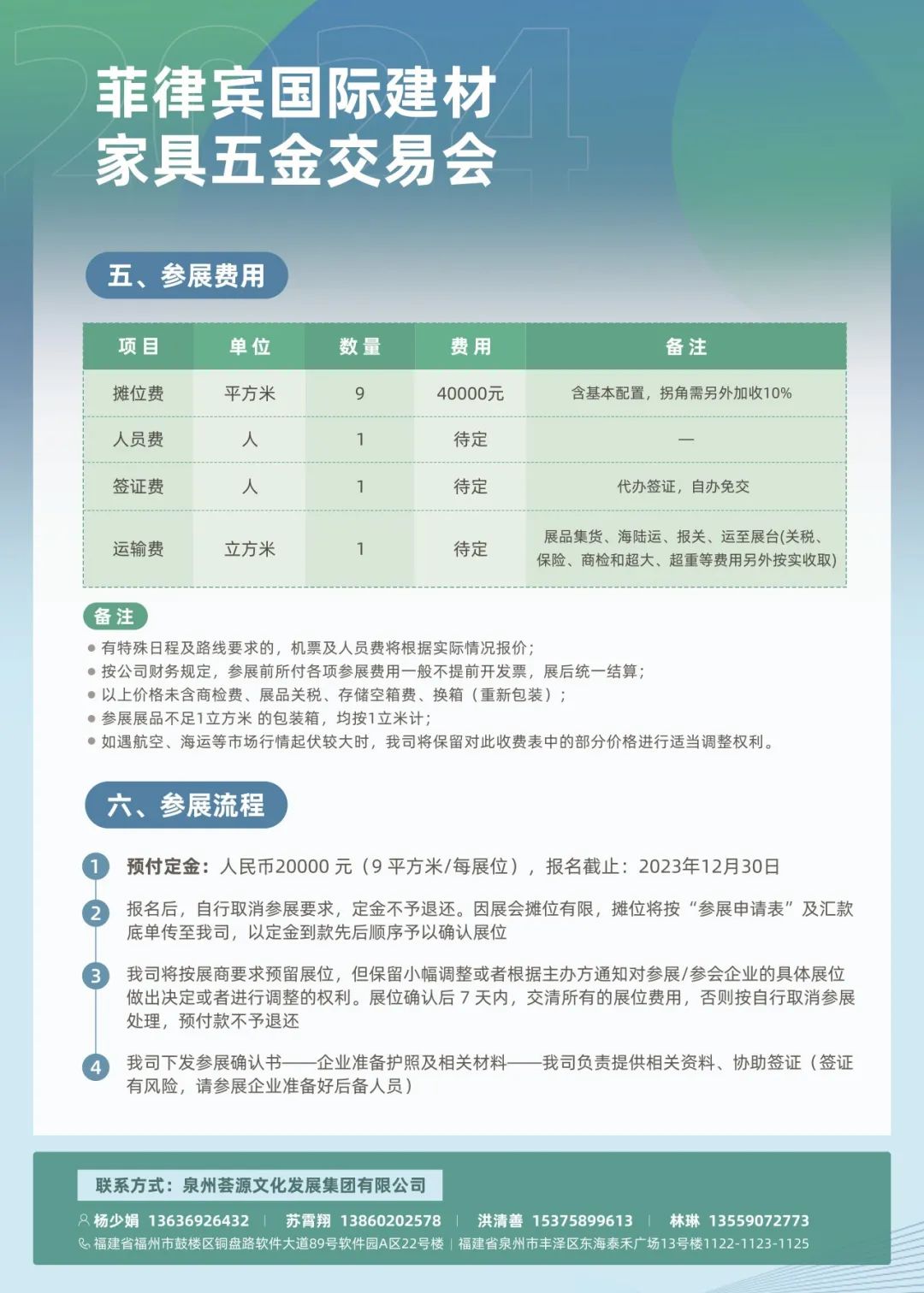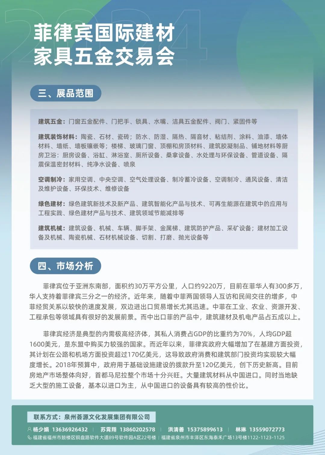 组织企业参与5月份印尼商务考察团、9月印尼·中国五金建材及家具展览会暨印尼亚洲国际电商交易会、11月菲律宾国际建材家具五金交易会、12月越南国际家居建材装饰及花园户外用品博览会等家居建材领域专业国外展,深入当地考察市场、挖掘商机,推动一批名企优品赴印尼、菲律宾、越南、沙特等国家设展销中心和海外仓,帮助企业扬帆出海,拓展市场渠道、提升品牌影响力。